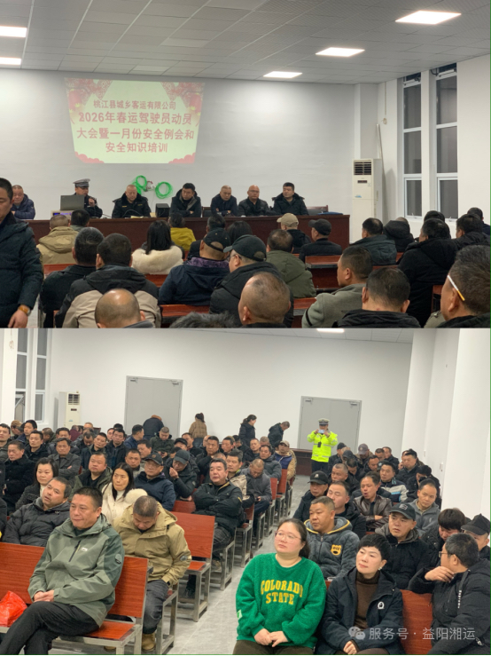 1月28日晚上7:30,桃江城鄉(xiāng)客運(yùn)有限公司召開了桃江片區(qū)2026年春運(yùn)駕駛員安全生產(chǎn)動員大會及安全教育培訓(xùn)會??h交警大隊一中隊中隊長肖建平、縣道運(yùn)中心副主任鄒凱參加。