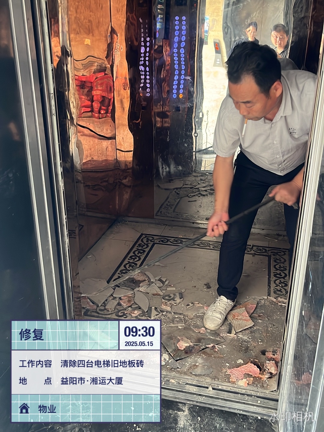 為優(yōu)化湘運(yùn)大廈公共設(shè)施,提升用戶出行安全性與舒適度。5月15日,湖南遠(yuǎn)程建設(shè)集團(tuán)有限公司物業(yè)部按經(jīng)理周琦順要求,對大廈內(nèi)電梯設(shè)施啟動專項(xiàng)改造工程,對三臺客梯及一臺貨梯的陳舊底板進(jìn)行全面更換。改造前,在副經(jīng)理潘宇文與新裝酒店施工方商討對接后,確定由公司物業(yè)工程人員完成舊底板的拆除清理,由酒店方鋪設(shè)全新耐磨地板的方案,同時創(chuàng)新采用"半覆蓋木板"防護(hù)措施,有效降低裝修材料運(yùn)輸對地面的磨損。針對實(shí)施過程中樓內(nèi)裝修施工頻繁的情況,辦公室還特別強(qiáng)調(diào)在每部電梯新增半塊可拆卸木板,既保護(hù)新底板免受建材刮擦,又不影響日常使用便利性。(郭燦燦)
